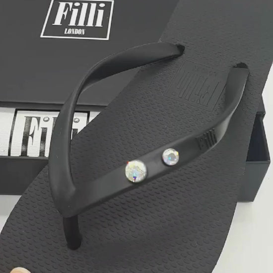 Aurora Crystal Duo Luxury Flip Flops - Black