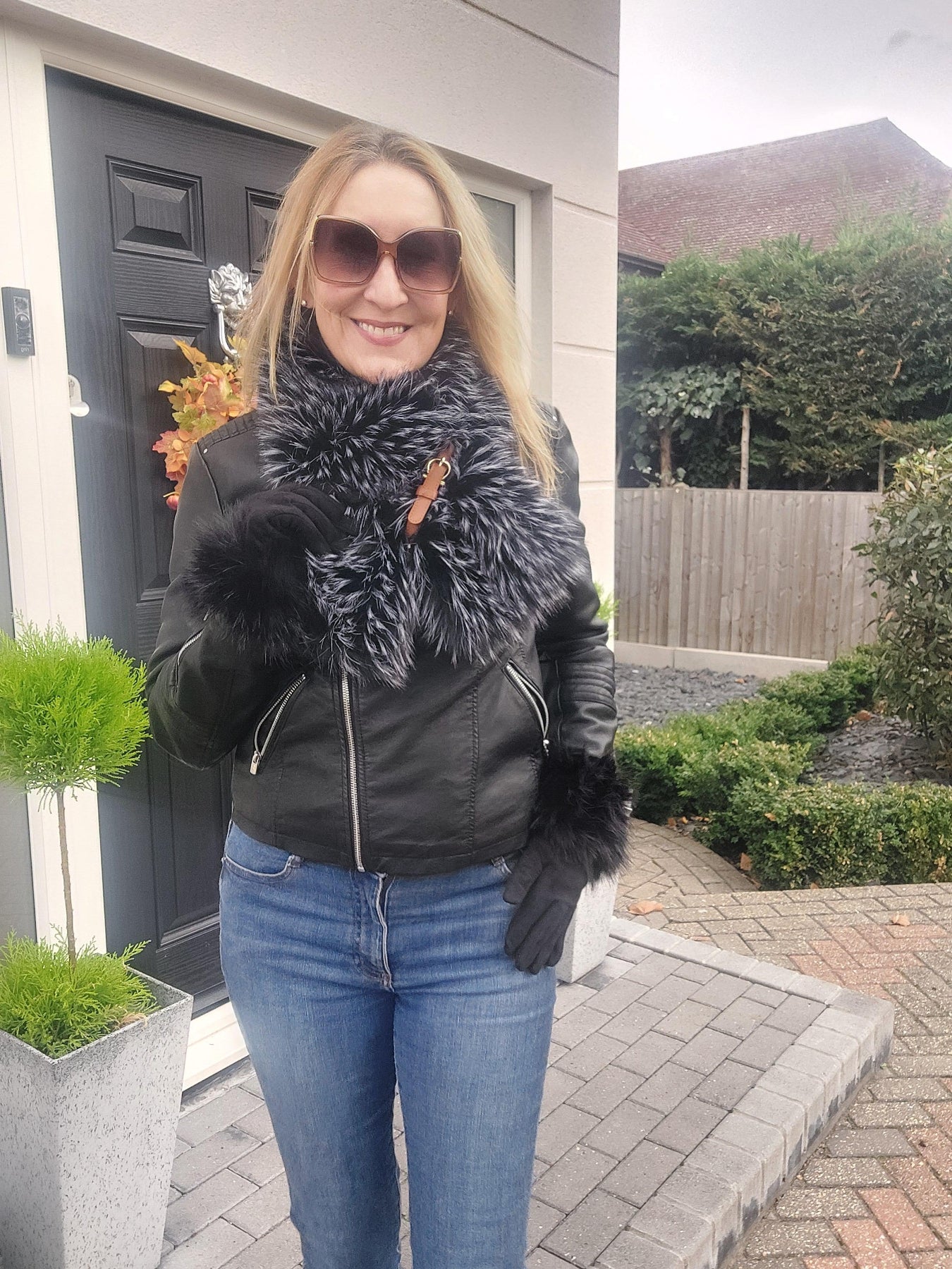 Stay stylishly warm this season with our luxurious faux fur scarf and gloves set, a must-have for the colder months.