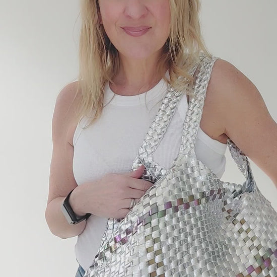 NEW ✨Luna Metallic Woven Tote Set In Silver