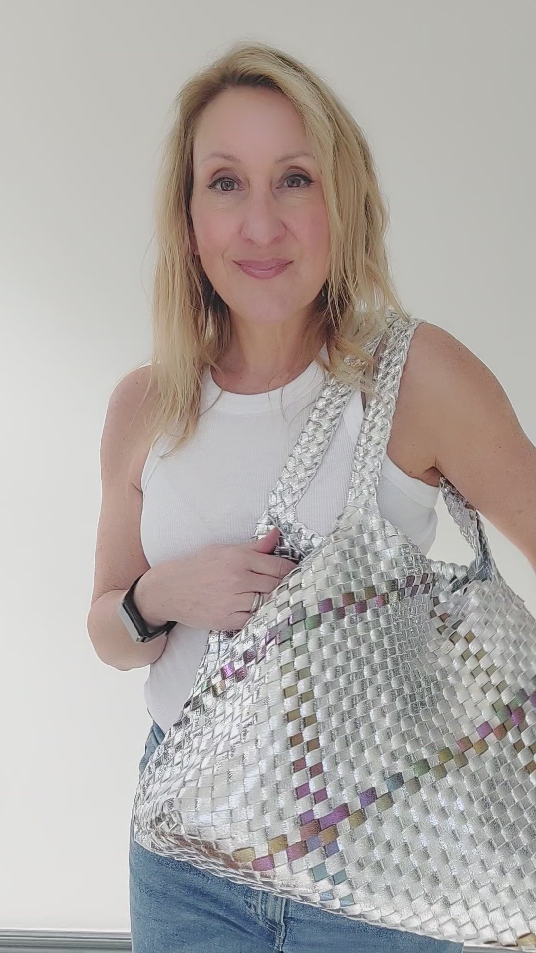 ✨ Metallic woven tote bag