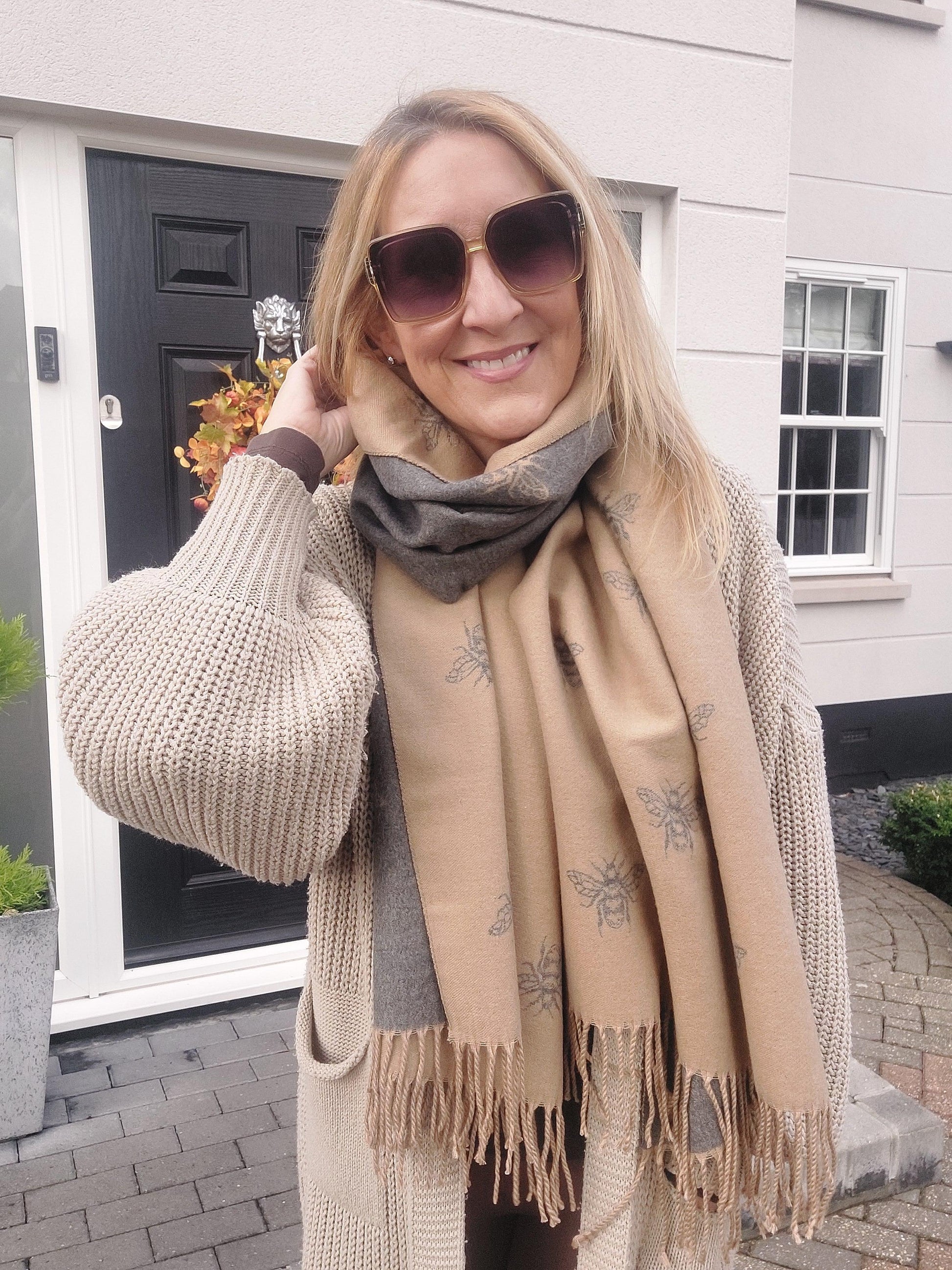 Wrap up in cosy elegance with our beautifully soft Bee Motif Scarf - a best-loved design combining timeless charm with everyday luxury.