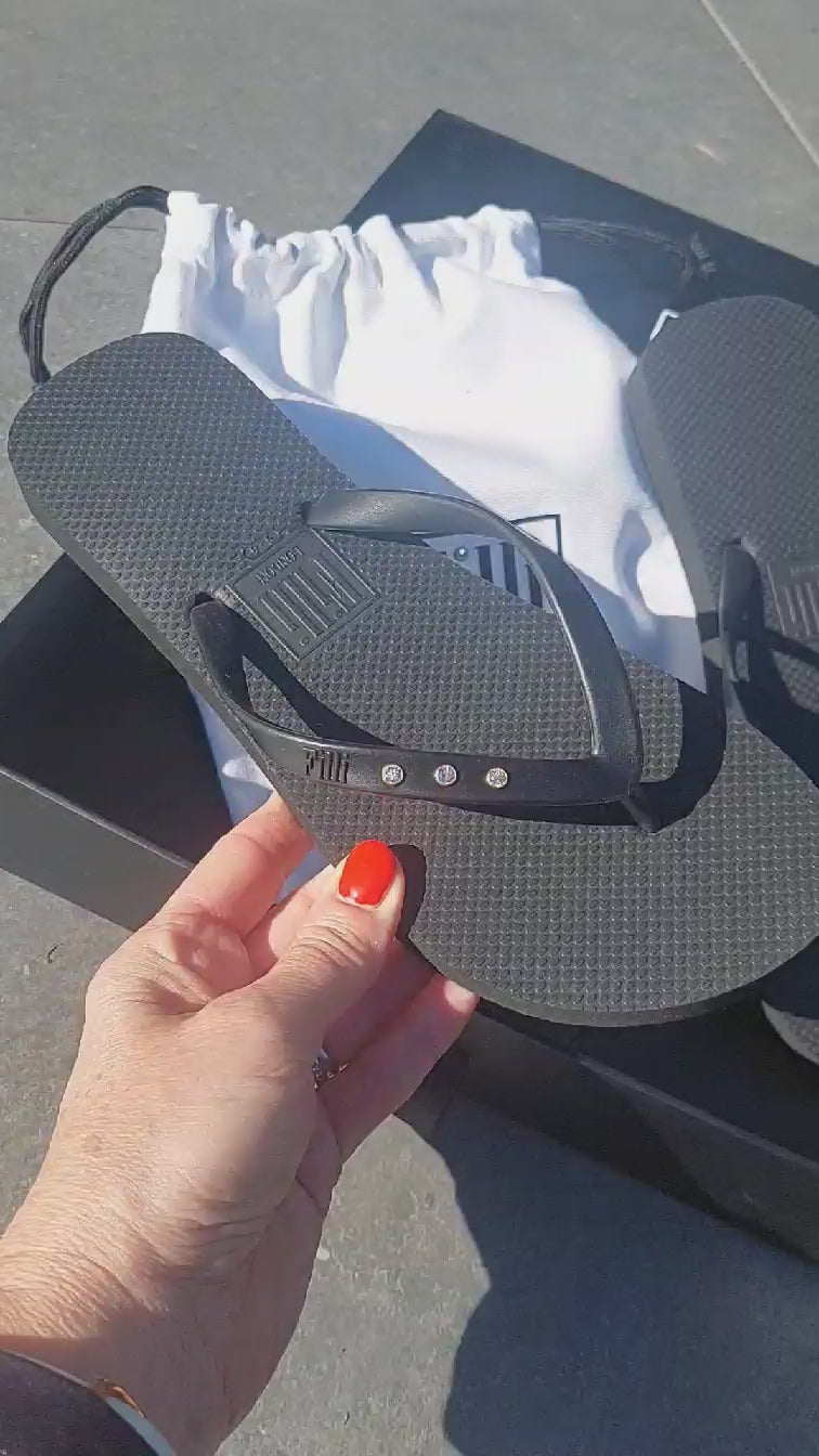 These are the most comfortable flip flops and have beautiful Swarovski crystal design. I love the thickness of the sole as it gives a soft cushion for your feet.