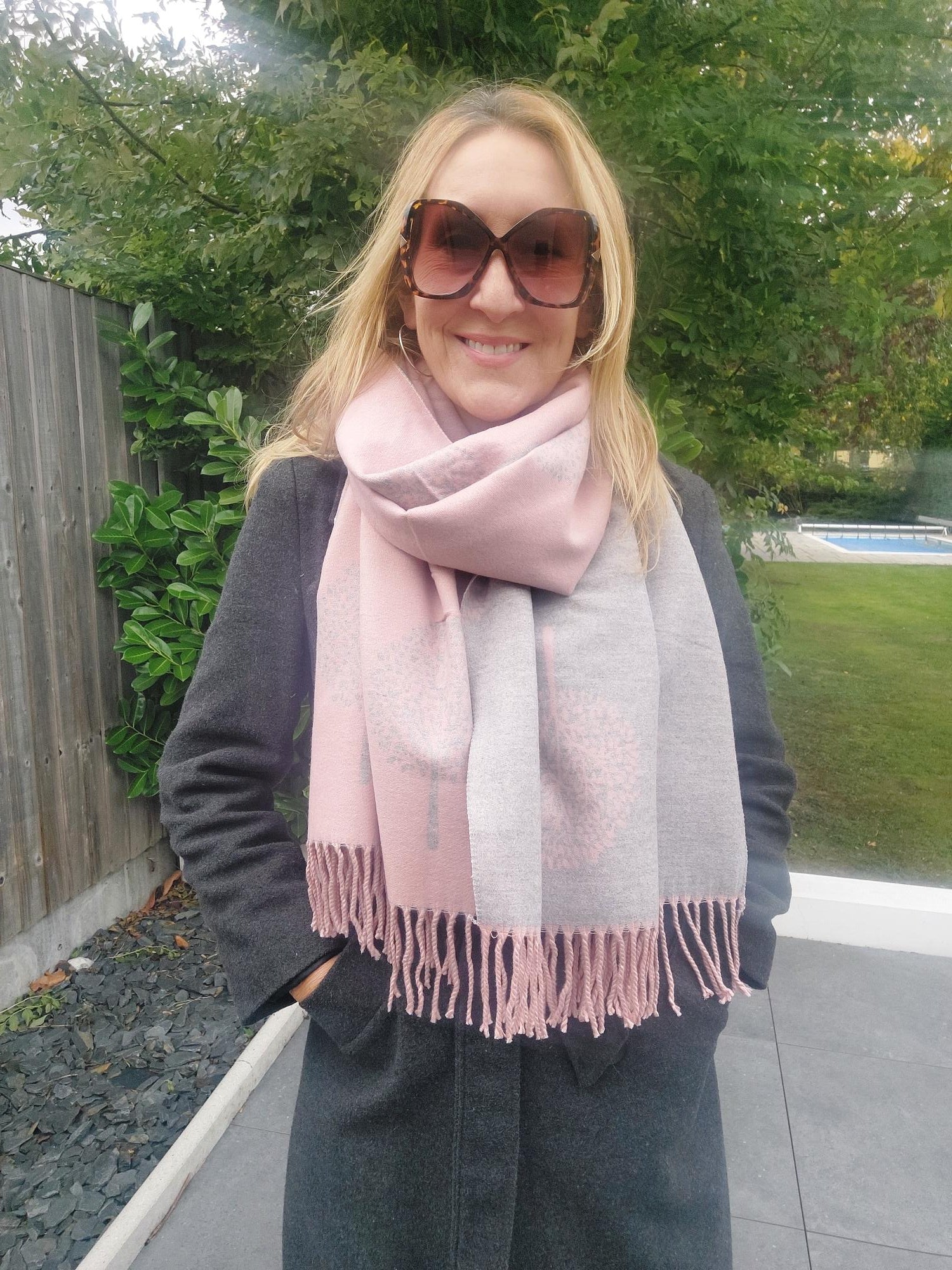 Tree Print Cashmere Winter Wrap Scarf In Pink